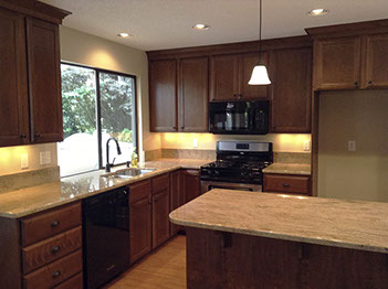 The Alderbrook House is a one-story, two bedroom two bath home located in Tigard. It's yard had become unruly and the interior was very dated. Brittany Homes stepped in and added hardwood floors, granite counter tops, and updated appliances and fixtures. The now spacious house has a beautiful interior that anyone would love to call home. It was sold in 2013 for $308,000.